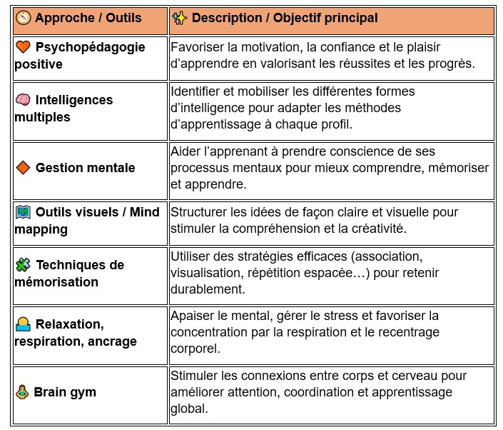 Devenir acteur de ses apprentissages, comprendre son fonctionnement et se sentir capable de retrouver du plaisir à apprendre.